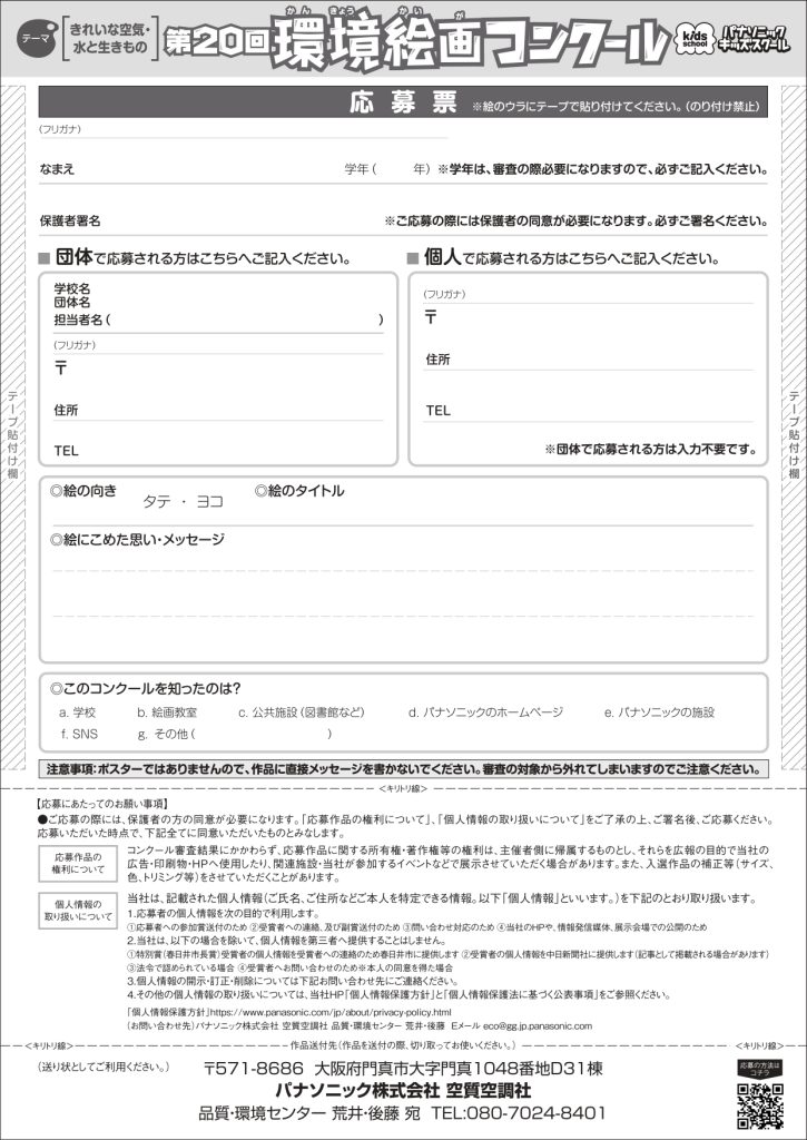 ※個人情報保護の為、作品(裏面含む)に直接、氏名・住所・電話番号は記入しないようにお願いします。