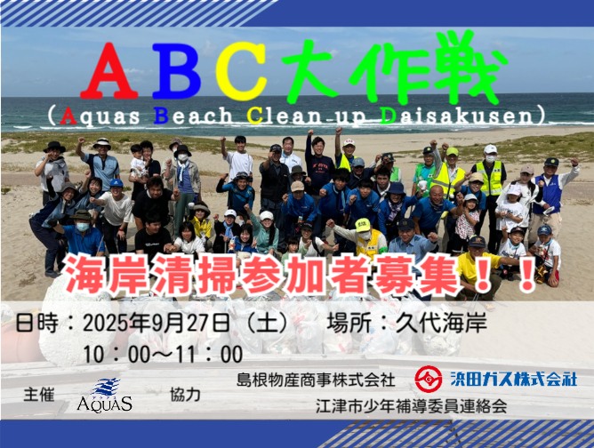 今回は久代海岸にて行います。一緒に海をきれいにしませんか?