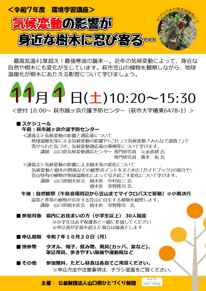 最高気温41度超え!最強寒波の襲来…。近年の気候変動によって、身近な自然や樹木にも変化が生じています。萩市笠山の植物を観察しながら、地球温暖化が樹木にあたえる影響を学びましょう。
