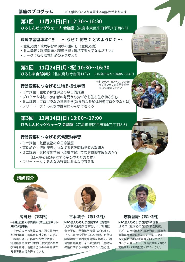 ・広島県環境学習講師、地球温暖化防止活動推進員など
