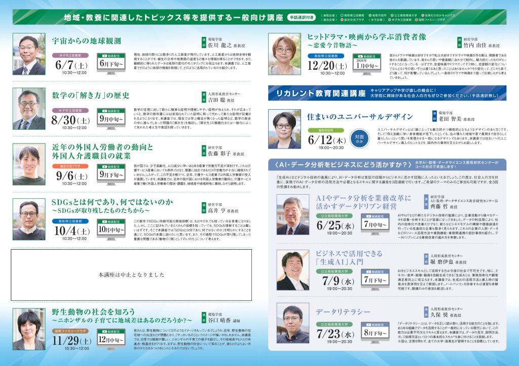 ①パソコンやスマートフォン等から、下記公開講座情報のURLにアクセス。
