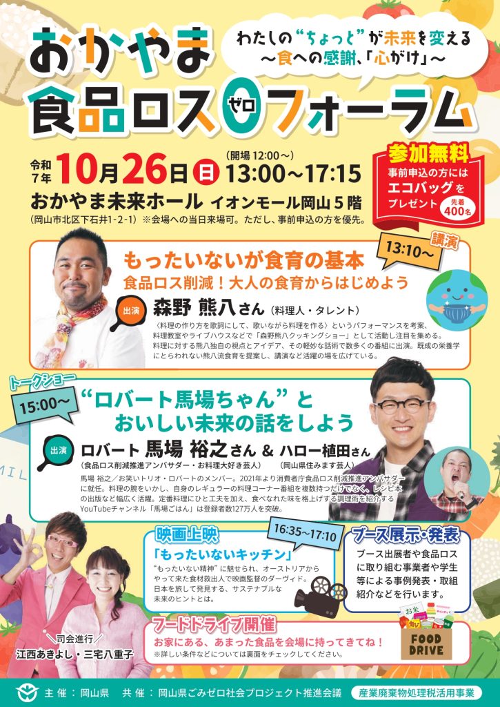 このキャンペーンに合わせて、聞いて学ぼう!わたしの”ちょっと”が未来を変える~食への感謝、「心がけ」~おかやま食品ロス0フォーラムを開催します。