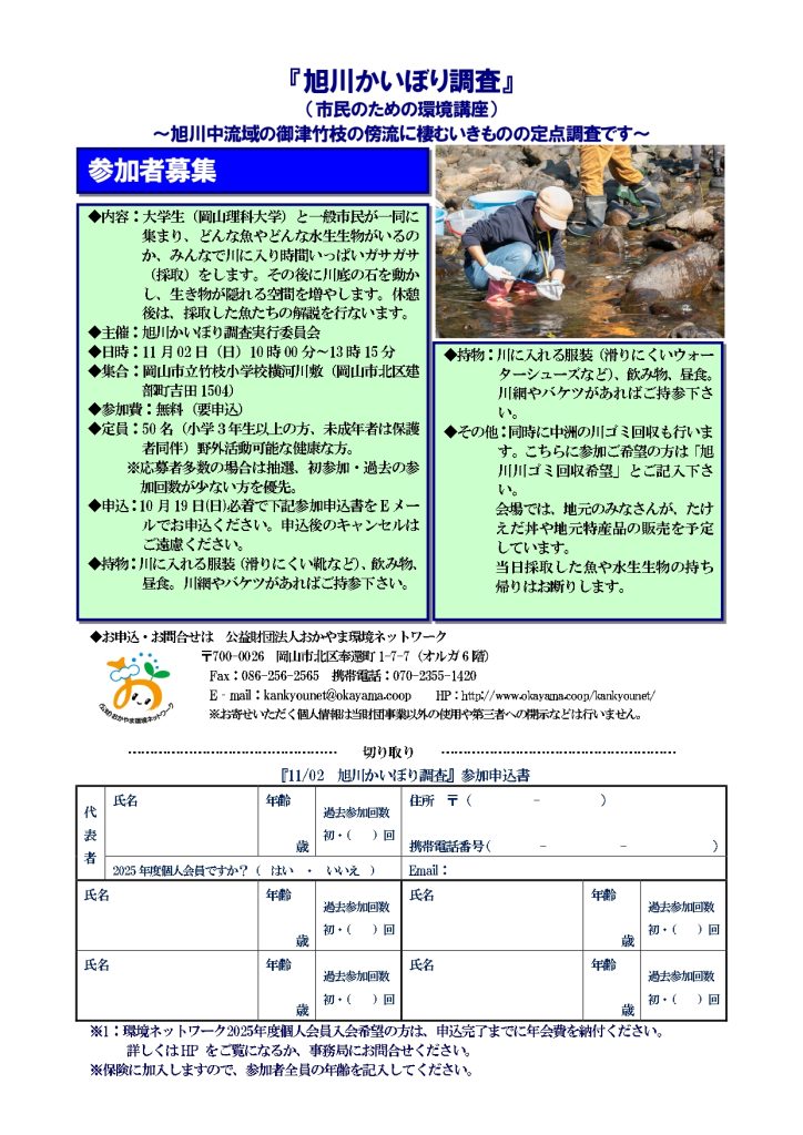 ・同時に中洲の川ゴミ回収も行います。こちらに参加ご希望の方は「旭川川ゴミ回収希望」とご記入下さい。