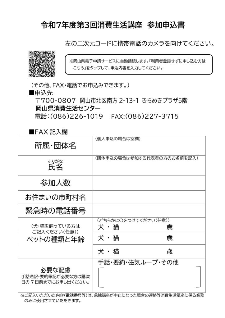 チラシの二次元コード、FAX、電話のいずれかの方法でお申し込みください。