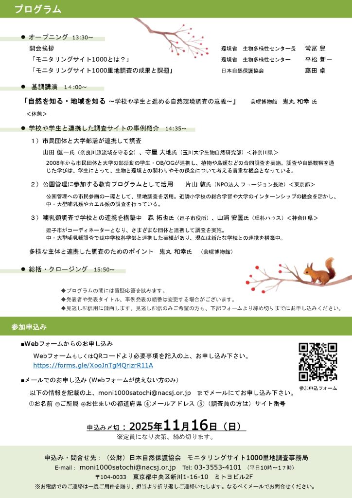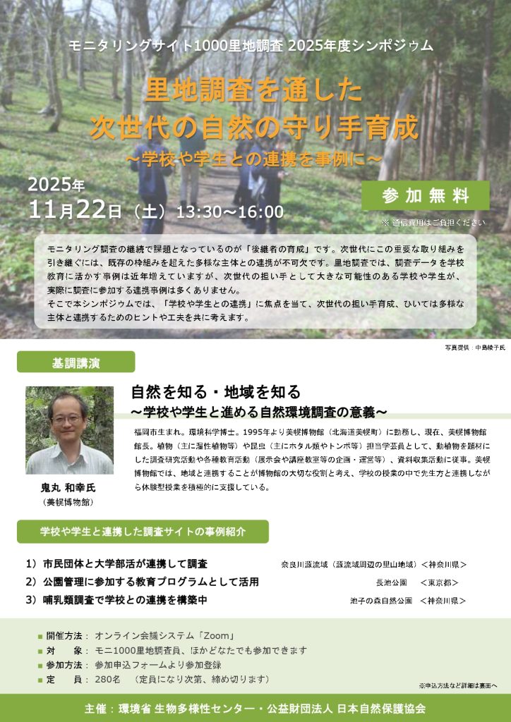 モニタリングサイト1000里地調査事務局 担当:福田