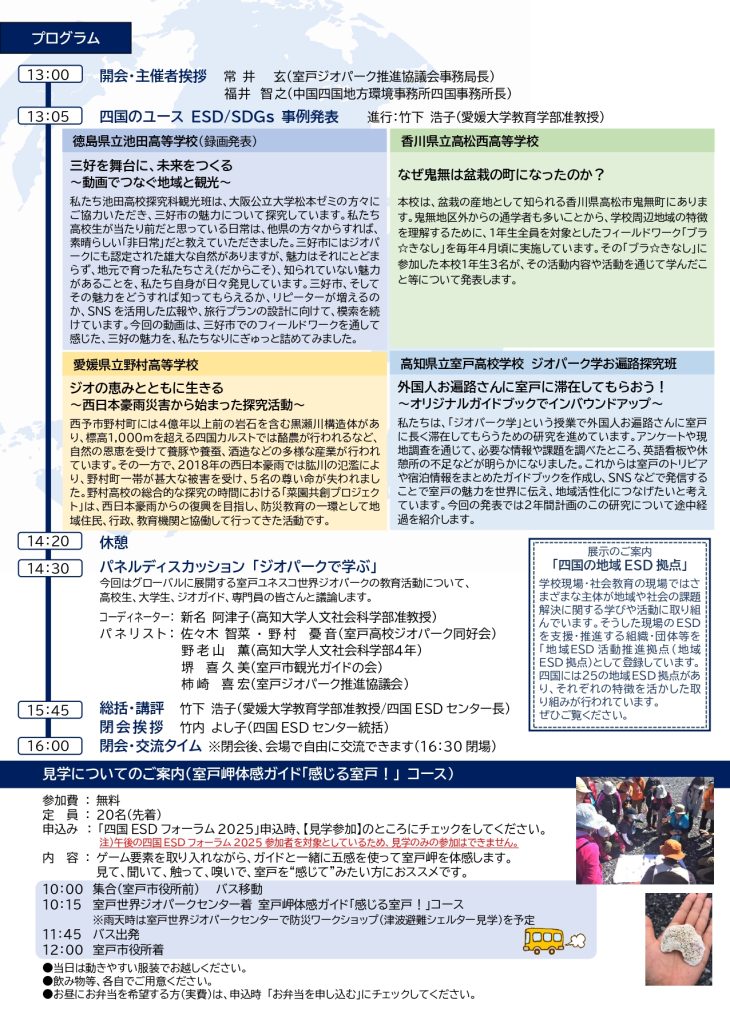 学校教育や社会教育のさまざまなテーマともつながるジオパーク、今回はそんなジオパークにおける教育活動について紹介し、その成果について議論することで四国の持続可能性を学び、考えます。オンライン参加もできます。この機会にぜひご参加ください♪