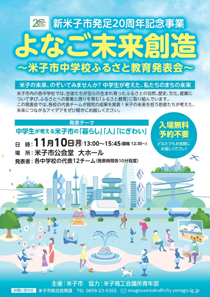米子市内の各中学校では、生徒たちが自らの生まれ育ったふるさとの自然、歴史、文化、産業について学び、ふるさとへの愛着と誇りを育む「ふるさと教育」に取り組んでいます。