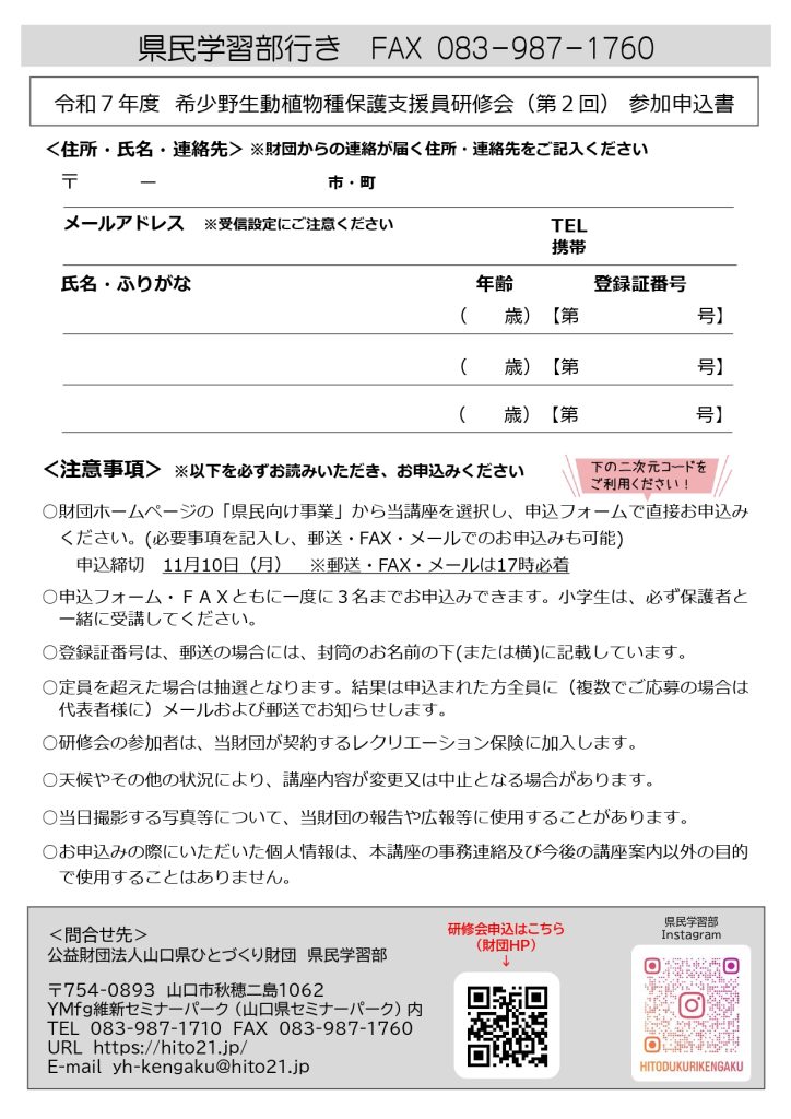 ※チラシ裏面の様式を使って郵送・FAXでお申し込み、または必要事項を入力したメールでお申し込みも可能です。