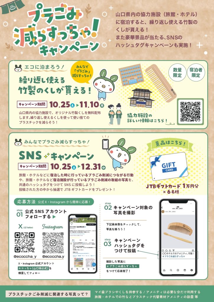 山口県では、宿泊施設からでるプラスチックごみの削減を推進するため、山口県旅館ホテル生活衛生同業組合等と連携し、下記のキャンペーン等を実施します。