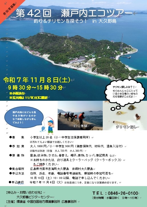 参加をご希望の方は、大久野島ビジターセンター(0846-26-0100)までお電話でお申し込みください。