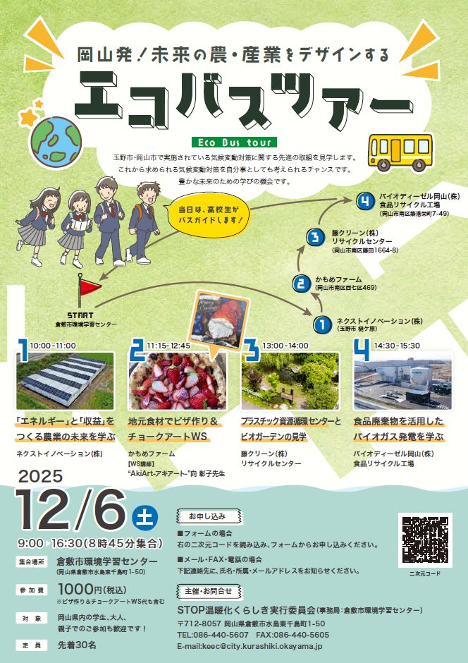 これから求められる気候変動対策を自分事としても考えられるチャンスです。当日は高校生がバスガイドをします。