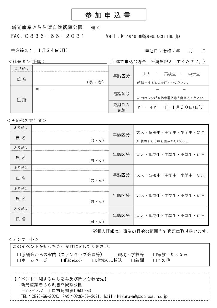 申込書は、新光産業きらら浜自然観察公園のホームページからダウンロードできます。