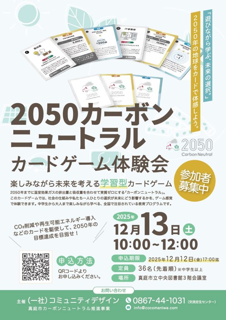 この体験をとおして、楽しみながら未来を考える学習型カードゲームのワークショップにご参加いただける方を募集します。