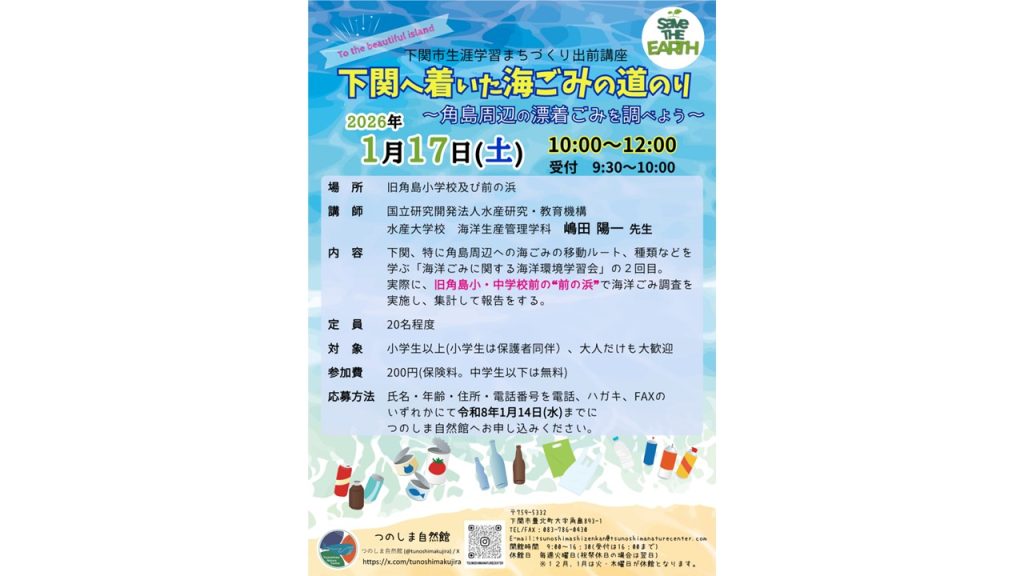 下関、特に角島周辺への海ごみの移動ルートや種類などを学ぶ「海洋ごみに関する海洋環境学習会」の2回目です。