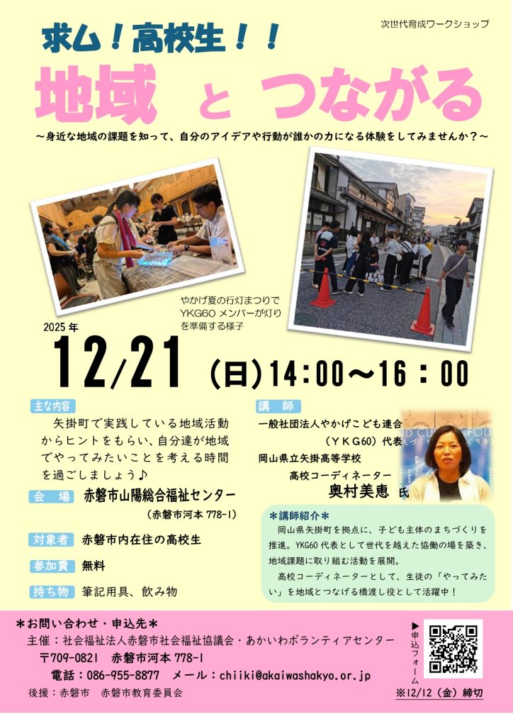 地元、赤磐市の高校生に向けて、地域に目を向け、地域のことをもっと知ってもらう機会を作りました。