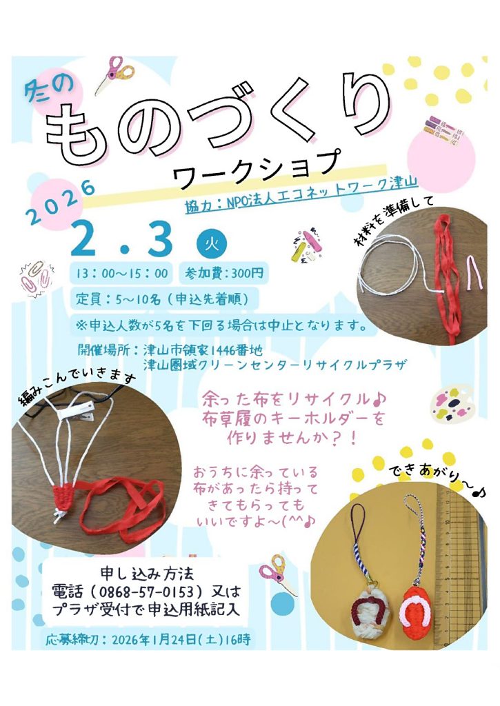 リサイクルプラザ体験工房にて、冬のものづくりワークショップを開催します。