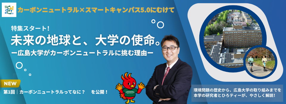 そこで広島大学では、カーボンニュートラルが生まれた背景や、環境問題の歴史、そして今、世界や広島大学がどんな取り組みをしているのかをわかりやすく紹介する特集「未来の地球と大学の使命 ― 広島大学がカーボンニュートラルに挑む理由 ―」を新しくスタートします。
