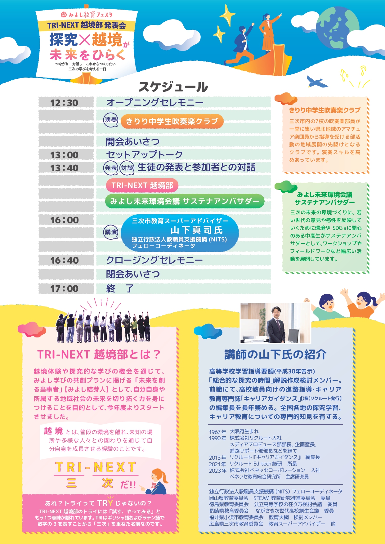 市民、児童生徒、保護者、教職員、地域関係者が集い、未来の三次の学びについて語り合いましょう!