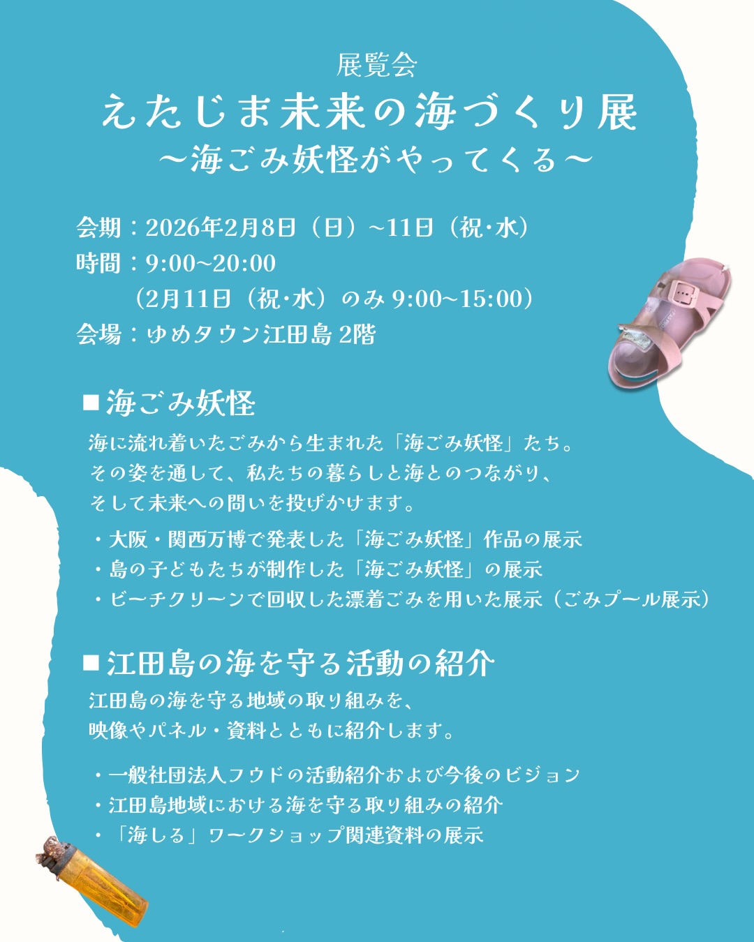 昨年の大阪・関西万博で発表された作品を含む「海ごみ妖怪」たちが、江田島にやってきます!