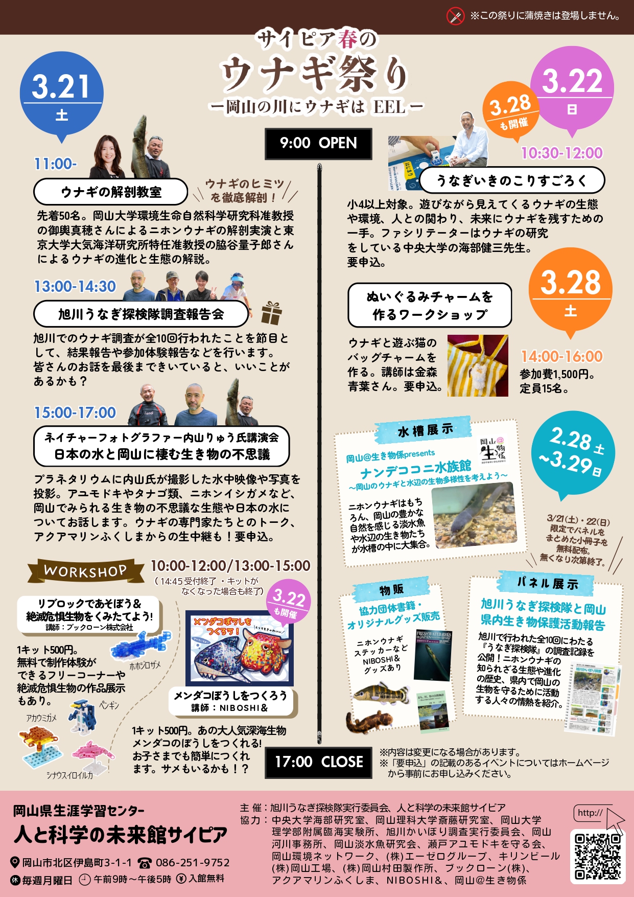 この企画には、日本を代表するウナギ研究者である海部健三先生が深くかかわってくださっています。3/21(土)、22(日)、28(日)にさまざまな企画にご登場くださいますので、みなさんぜひ来てください!