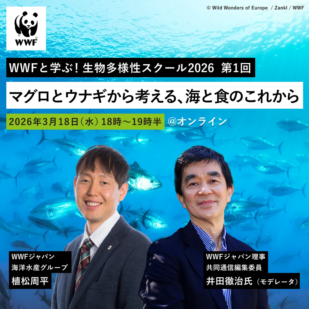 気候変動や乱獲などにより、世界の水産資源の多くが深刻な減少傾向にあります。海の生物多様性を守り、おいしいお魚をずっと食べ続けるためには何が必要なのか?マグロとウナギの事例をもとに、長年、水産資源の保全に携わっている海洋水産グループの植松周平とともに、食卓の未来について考えます。